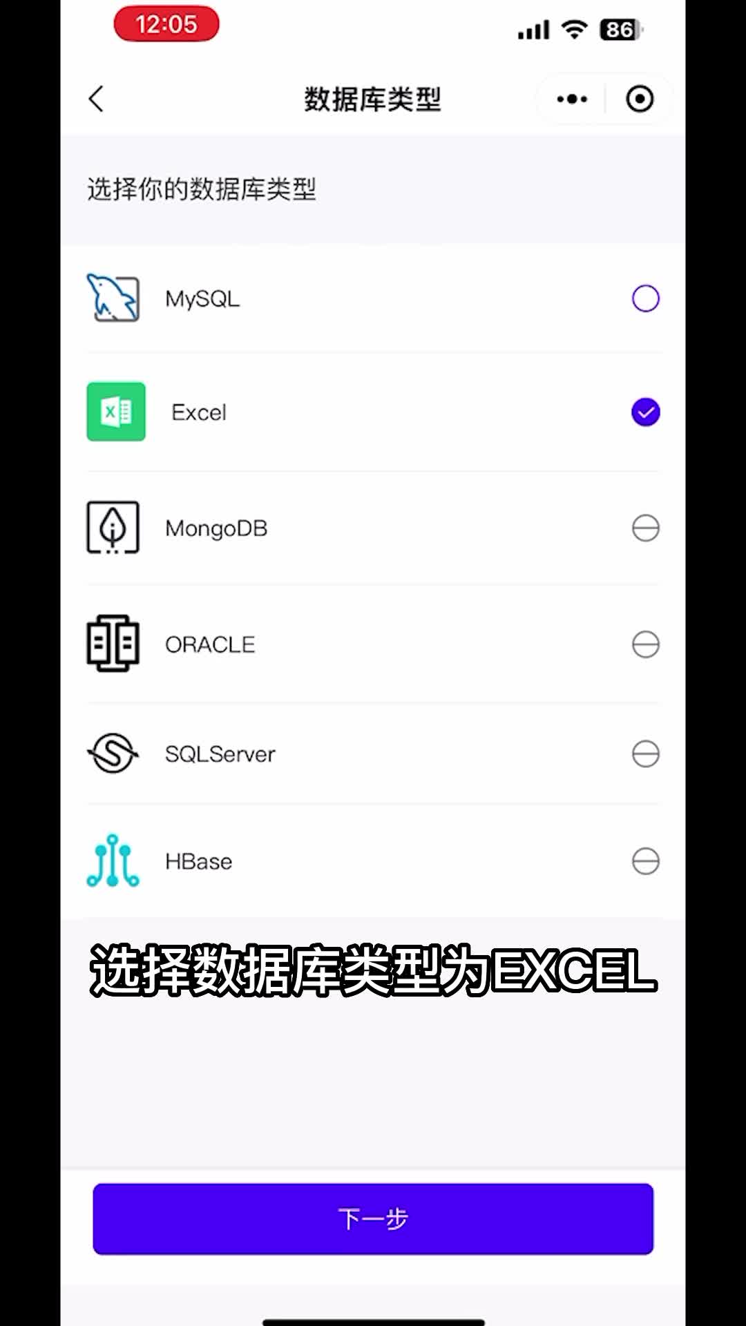 这里以excel导入为例,首先打开数据库菜单,点击右下角的加号按钮,选择数据库类型为excel,在微信聊天页面选择自己的excel文件。导入成功后。