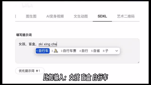 由于s d x l模型的加持,这里无需输入太多关键词,比如输入女孩盲盒自行车出来的图就已经很精致了,用这种方式快速生成一批高品质图片。