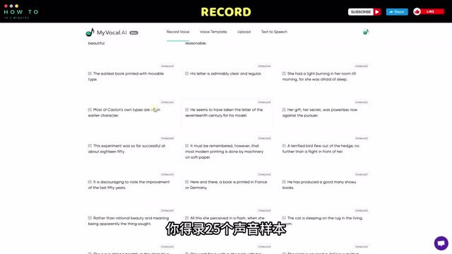 你可以在视频描述中找到链接,点击登录菜单。使用谷歌、facebook或者其他电子邮件账户。注册过程完成后。点击录制声音菜单,开始录制你的声音,来训练我自己的声音。你得录二十五个声音样本。