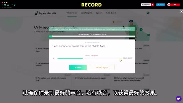 你可以播放你录制的声音。单击提交,提交你的声音或再次单击录制。如果你觉得声音不够好。就确保你录制最好的声音,没有噪音。以获得最好的效果。
