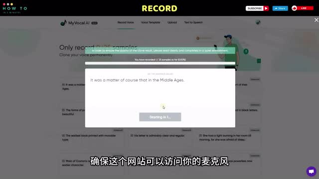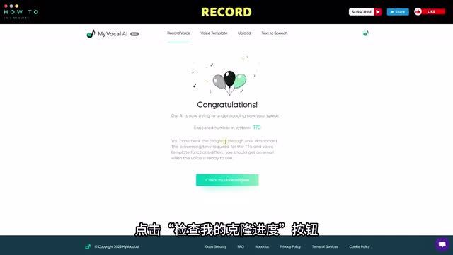 欢迎今天来到我的视频,我要给你看一个全新的免费人工智能a i只要一分钟就可以克隆你声音的工具,这个工具名称就是my vocal a i有了这个声音a i工具,你可以创建文本到语音内容,甚至用你的声音唱歌。克隆一个你目前处于测试版,甚至在测试版中也是可以免费使用的。这个视频里所有的声音都是用my vocal ai创作出来的。这个视频分为四个部分,第一部分,设置我的声音和录像。你的声音。