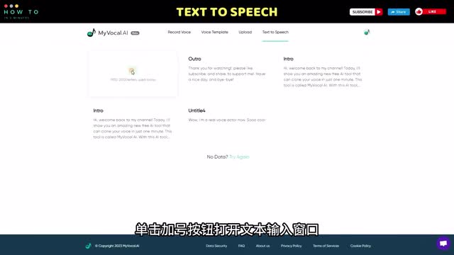 你会收到my vocal ai人工智能发来的通知邮件。第二部分,文本转语音使用。我们的人工智能语音对于文本转语音也可以进入文本转语音页面。单击加号按钮,打开文本输入窗口。输入你的文本并按下提交按钮,从你的文本创建音频。