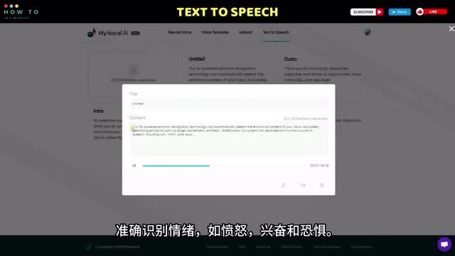my vocal a i允许你创建文本到语音内容。甚至使用你的。a i语音克隆。谢谢你观看到这里,如果喜欢请关注点赞并分享来支持我。祝你今天生活愉快,再见。