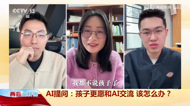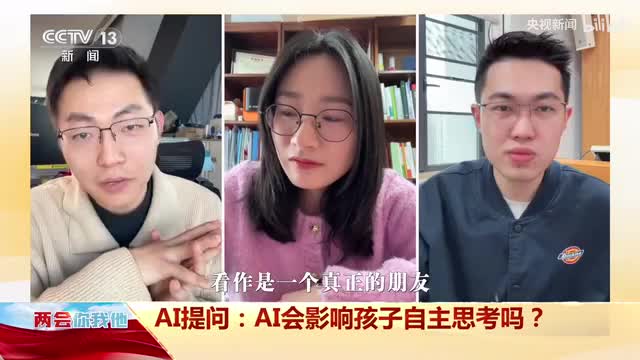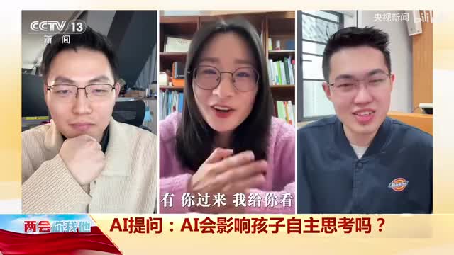 接下来也邀请各位观众、网友、听众哈,你们猜一猜能不能听得出来。想问三个我觉得还挺深刻的问题啊,请请两位回答。呃,第一就是虽然a i工工具我们开始使用了,但是你觉得会不会影响孩子自主思考,还有解决问题的能力。我觉得对我的孩子而言,我觉得他有一点就反而更激发他的创造力。