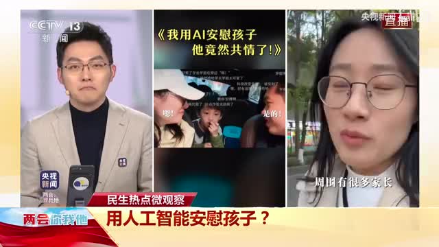 哦,对了,还得说一句,今天是我第一次很认真的用a i写了一个采访提纲。一会儿问给他们嗯认识吗?一会儿直接看片子了走。你说听说你那边找到的采访对象啊,会用人工智能来哄孩子,呃,这真的假的?我已经迫不及待要分享了啊,央视新闻新媒体民生热点微观察。呃,一周前哈我们节目编导小强特别兴奋的来找我说,哎,我们不是要谈a i嘛?我们来看看这个视频,特别有意思。