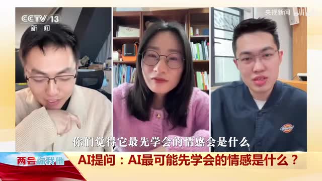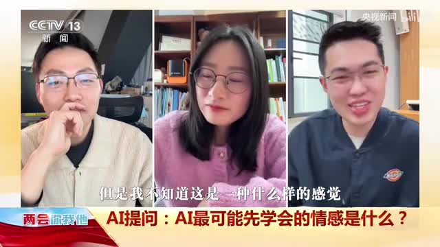 那我会有一点担心。嗯嗯,第三个问题,呃,如果a i有一天啊突然学会了人类的情感,并且成为了一个真正有感情的伙伴。你们觉得他最先学会的情感会是什么?为什么?这个问题好有挑战性哦。挑战性。