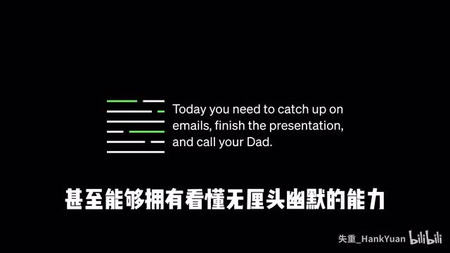 如果你希望更清晰的活在下一个时代,也许看完这个视频能够给你一些指引。二零二三年三月,g p t四发布。g p t四不仅像人一样可以很好的完成写代码、总结文章、写诗之类的复杂人物,甚至能够拥有看懂无厘头幽默的能力。在open a i提供的一个示例里,g p t四准确的回答了几个网络图片为什么搞笑的问题。虽然解释的比较初级,但他确实能准确分析出图片中的各种元素,并分析他们之间的逻辑。