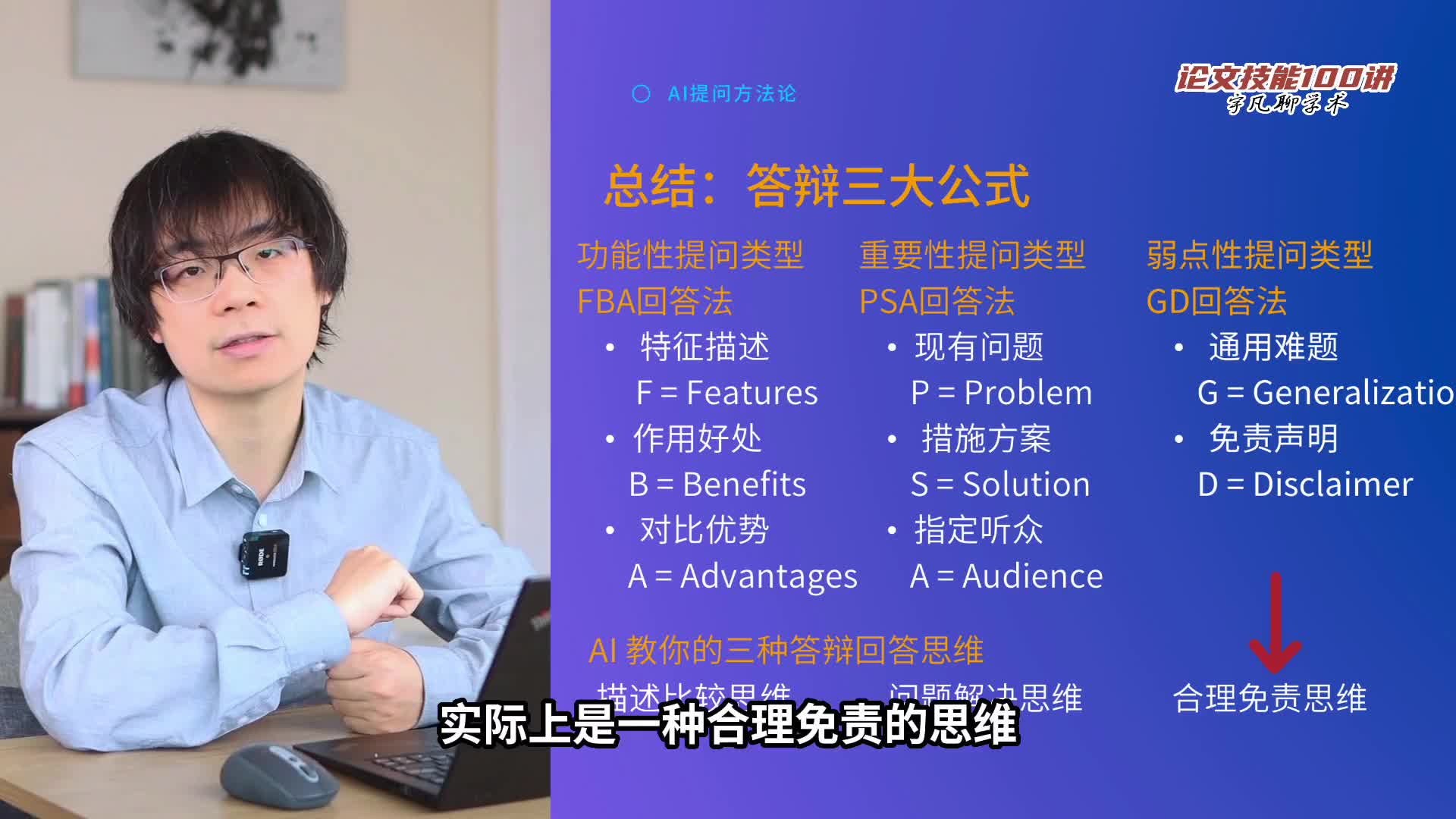 那么在面对重要性问题的时候,问有什么贡献的时候,你用p s a回答法,实际上是一种问题解决的思维。在面对弱点性问题的时候,你给出通用难题和免责声明的效果,实际上是一种问题解决的思维。当然每个小伙伴呢他自己的论文呢当然也都不一样。所以呢你在丢给g p t的时候,他给你回答有可能会参差不齐。我这里给你总结的三种思维模式的时候呢,是我跟g p t多次互动之后,我总结出来。可以帮助你论文提升的。