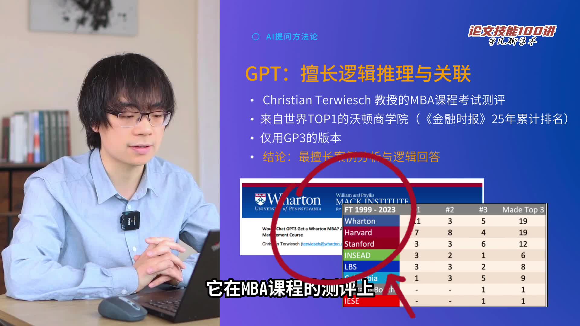 第三部分呢就是怎么练,你总要事先练一练吧。这里告诉你怎么用g p t来帮助你魔鬼式训练。导师问什么你都已经准备好了,还怕什么呢?我们首先来听。调查g p的原理,为什么它能够帮你答辩?其实我们已经都发现g p d是非常擅长逻辑推理和关联的。比方说这里来自于沃顿商学院的教授,他在m b a课程的测评上使用g p t三的版本哦去让他去做试卷,就发现非常擅长做案例分析和逻辑回答,这正是你在答辩时候需要的东西嘛。那么也有小伙伴担心说唉,用g p t实际上会回答错误,那我们就来看第二份研究,实际上最新的研究他就发现g p d回答错误啊,其实百分之七十多是因为他记不住知识。
