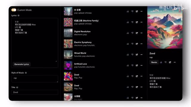 你觉得ai创作的歌曲如何呢?十分满分,可以把你的分数打在弹幕里,在搜索中作曲,除了根据提示词直接生成以外,还可以根据你给出的歌词直接生成音乐,并且支持中文。于是我们自己做了几首。不能再次给你说唱。心口归鸿。我写过那段你手,但偏。但是这个音乐生成有时候也会抽风。