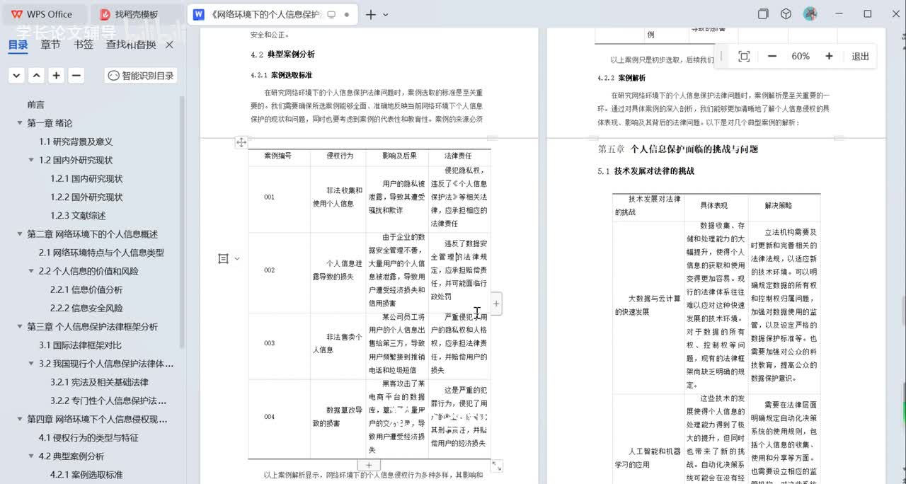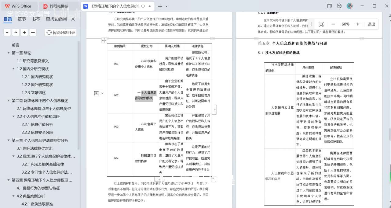 就网安法嘛,就是最早的话,网络安全应该是我们这个江爷爷提出来的。然后在这下面全都是一些表格,案例分析里边他也用了大量的表格,对不对?你看非法收集对不对?个人信息是不是?然后非法售卖,这些东西都有,而且。侵权的他这个行为还有后果,还有法律责任,都可以对应起来的这是目前来说百分之九十九点九九的工具是做不到这一点的。