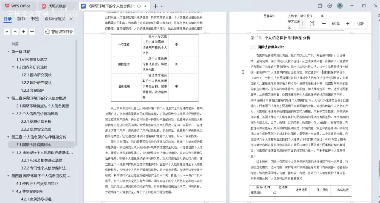 如果说有人物时间的话,你能对应起来,导师就知道是真假了,对不对?很多导师法学专业的导师,他对于行业内的本专业的一些专家来说,哪一年发生了一些重大的案例、重大的事情,颁布了哪些重要的法律条文,他都知道,对不对?你这里边就看看你是不是蒙的对吧?很多a i是怎么给你东拼西凑的,然后再一个看什么呀表格,我们钛元素生成的里边都有都有什么呀?表格大量的标大量的表格在这里边。你看表格表格,然后表格社交信数据安全,然后这个信息滥用这些都可以。然后再看一下这里。