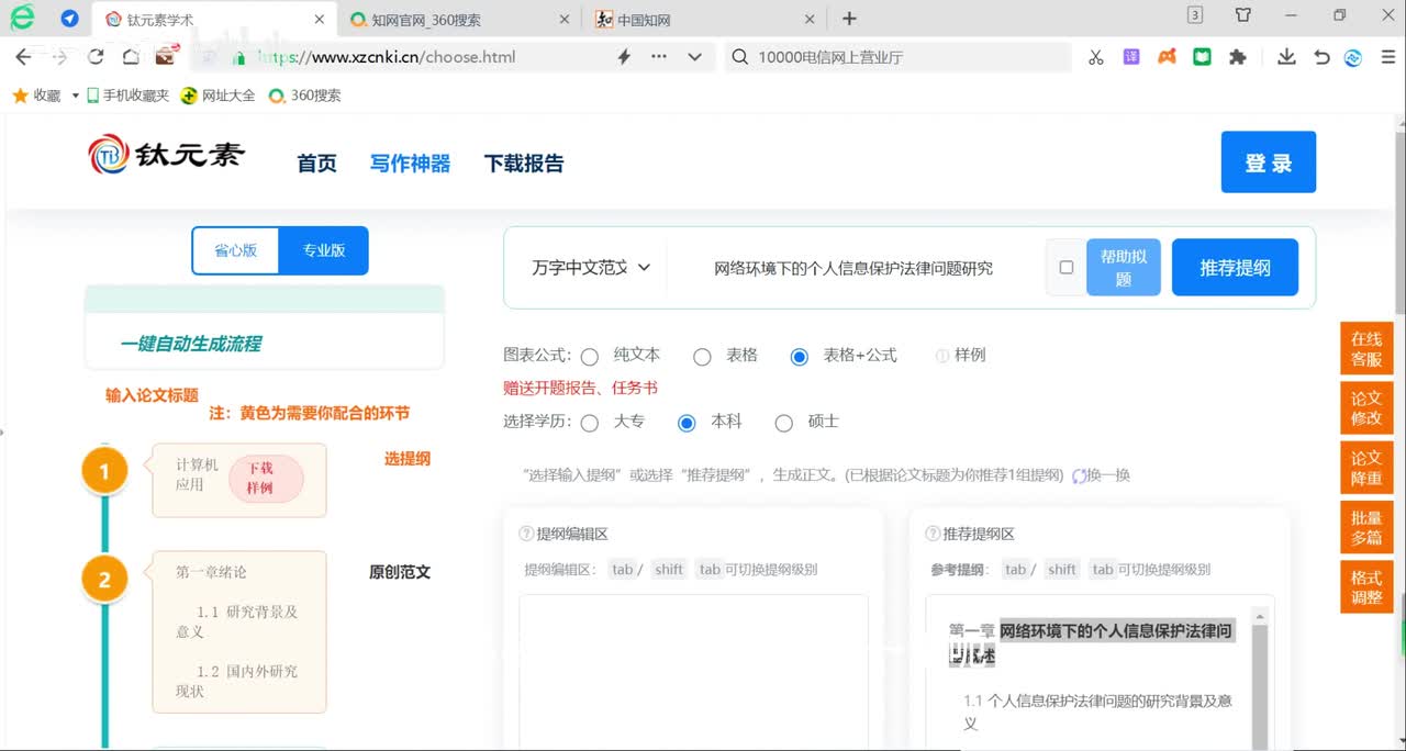 然后第二呢就是看你的这个就是呃里边写作的手法。然后我们看一下这个网络安全,就是我们用碳元素生成的一个。呃,一个初稿吧,然后我们勾选的时候,腕字版两万字版其实看都可以啊。