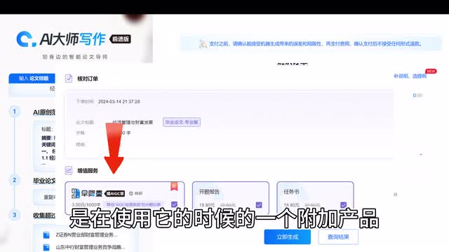 编辑好后我们就可以生成论文了。这里就需要花米了,障碍记忆力的功能就在这里,我们可以把开题报告跟任务书取消掉,这样还能省笔钱。随后等待二十分钟左右就能生成完这个压缩包,就是生成出来的内容包。