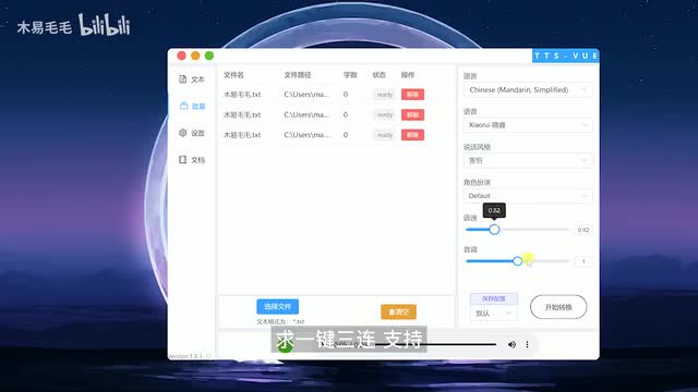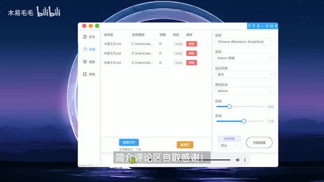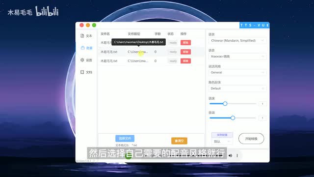 点击选择文件就可以批量导入文本,然后选择自己需要的配音风格就行,没问题就可以导出下载,为大佬点赞。