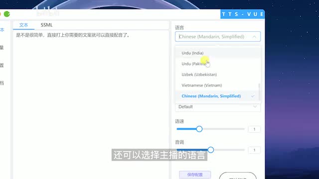 这里的主播有十几种,可以针对自己需要选择,不仅可以自由选择主播,还可以选择主播的语言、情感、语速、音调。