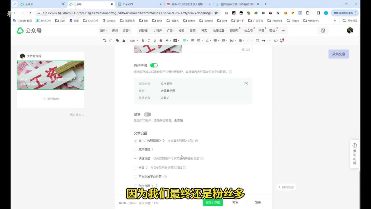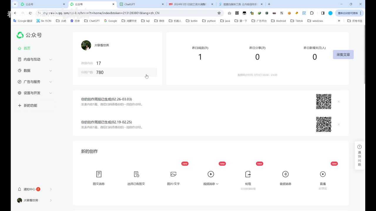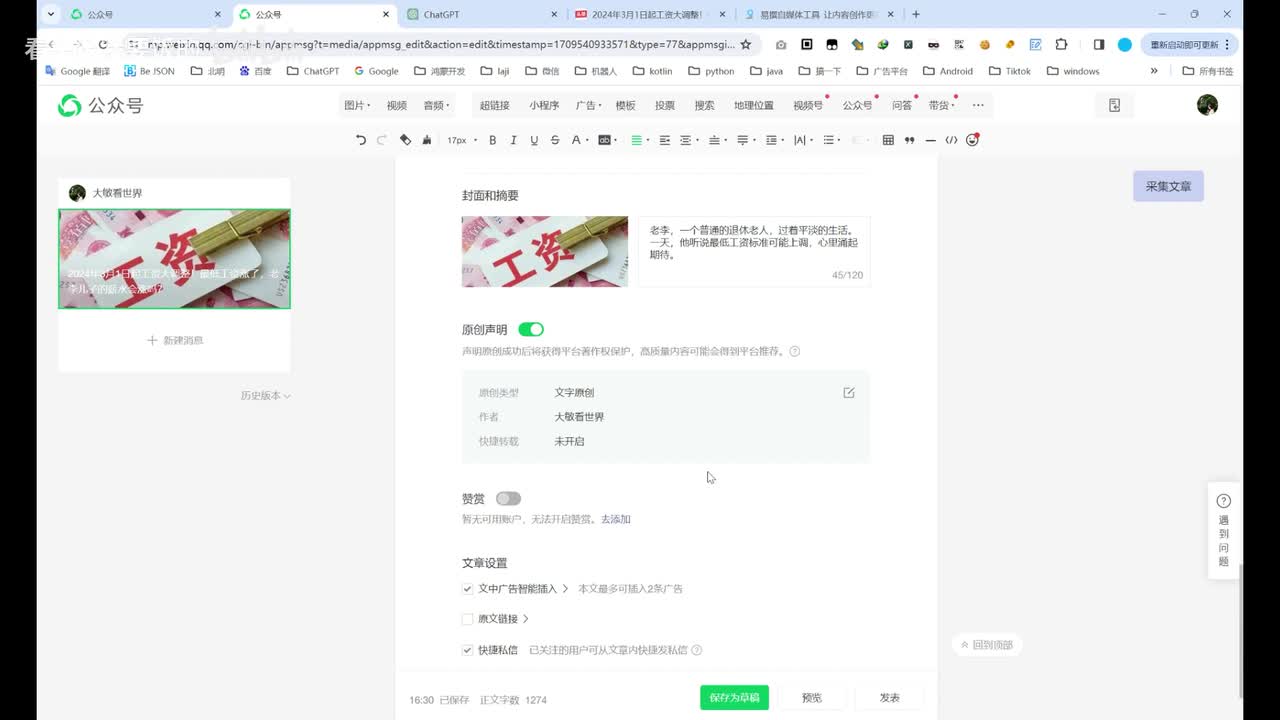 然后我手机上点确认。然后这篇文章就能发能够发出去了。啊,这个是嗯我的一个。我的一个数据。全篇的话也就这么简单吧。