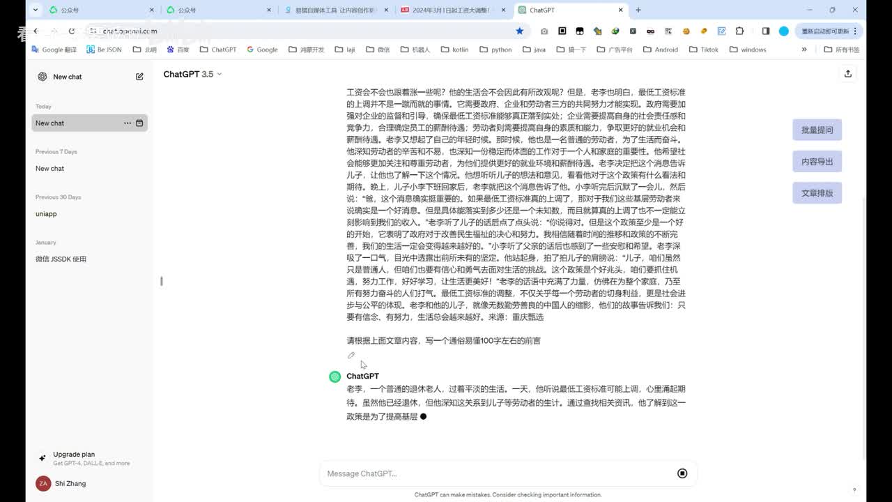 写一篇那个文章原创度高,通俗易懂,结构清晰,能够吸引粉丝不少于一千字的。为什么不少一千字呢?因为一千字的话对于公众号流量主来说,可以把他的呃文章内的广告拉满。就是文中可以插两条广告,然后文底有一条广告。我们就是执行了这个批量提问之后呀,确定了之后呀,就不用管了,它会自动把这些内容给执行完。嗯。
