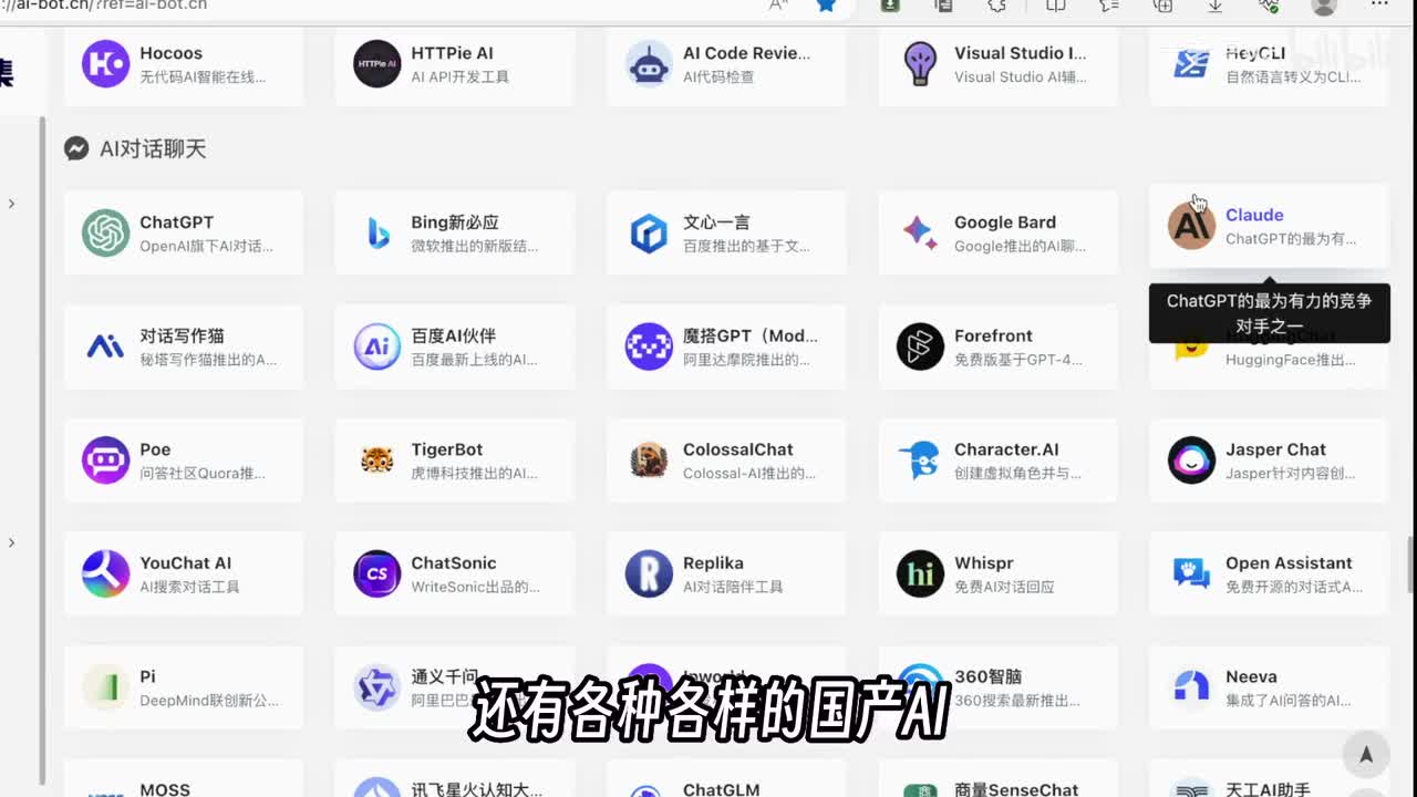 我们点击a i对话,这里不仅有最强a i chat g p t、new bill克劳德,还有各种各样的国产链,像文心一言。对话写作猫,然后我们再点击图像工具,像s d mid journey,各种ai绘画工具这里都有。