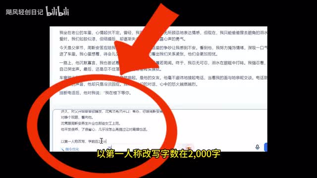 选择文章改写助手,粘贴要修改的小说内容,在文案下面加上以第一人称改写,字数在两千字,然后发送a i就会快速对原文进行修改。
