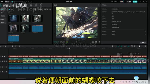 然后咱们这个比例调成四比三。然后把这个字幕往下拖一点。然后把它这个大小调成八,然后再把字体改成这个颜色,就比较显眼一点。之后的话就是正常加一些特效就可以导出视频了,这一整个流程就是这个样子。