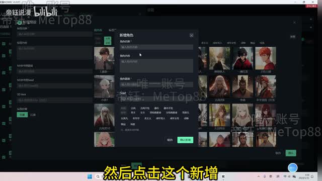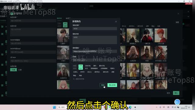 粘贴粘贴到你这里,然后点个确认新增就可以了。然后再选择你这个标签,比如说古风的男主,然后点击个确认。因为我这里已经弄好了,所以说我就不再重新做了。然后弄好这个人物之后,你可以点一个选择,输入个男主。