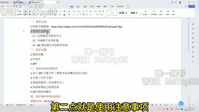大家好,今天讲一下软件从安装到出视频的整个流程。首先咱们点击这个百度网盘链接,把这个软件下载下来,然后就是解压。第二点就是使用注意事项,首先这个安装路径不能有中文,然后就是关闭梯子打开红包。还有这个m g要在打开的网页登录才能链接,不然的话连接不上。
