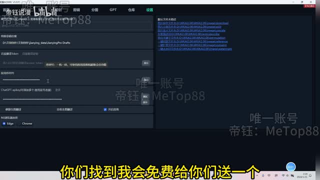 接下来就是第二步的软件设置。首先打开这个剪映,然后点击这个全局设置,点击这个草稿位置,把这个给复制下来。然后粘贴到咱们红包里面。然后就是百度talking,百度talking的话一般用不着。