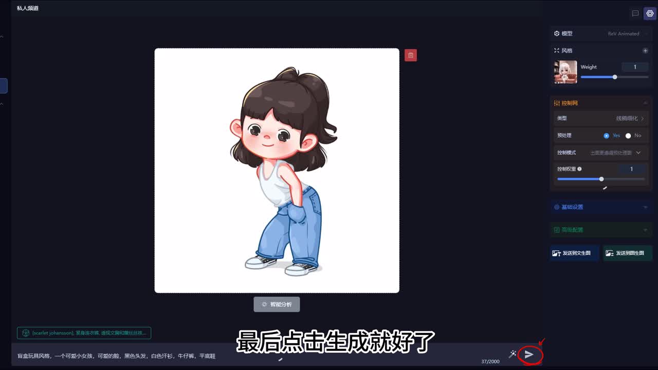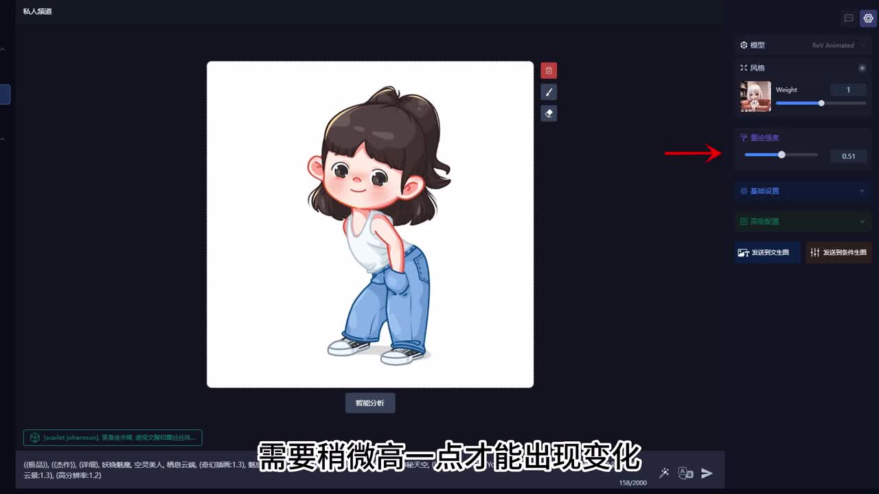 只是这次我们发送到图生图和第一种方法差不多。上传原图,选择风格,修改提示词。