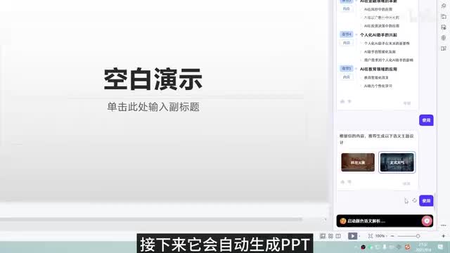 四chat p p t当你还在加班熬夜做p p t a i,已经让我实现p p t自由。点击这个p p t插件,简单输入一个主体ai就能自动生成标题和大纲供您选择。