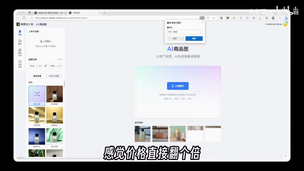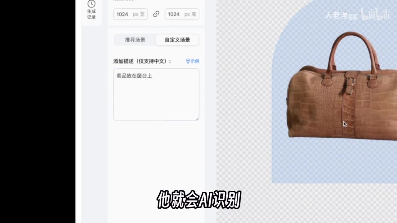 另外除了生成模特图,这里还有一个a i商品的功能,各种衣服小商品用这个功能处理一下,感觉价格直接翻个倍。我随机找一商品上传,它会自动把这个商品抠出来,然后在这里选择你想要的场景。