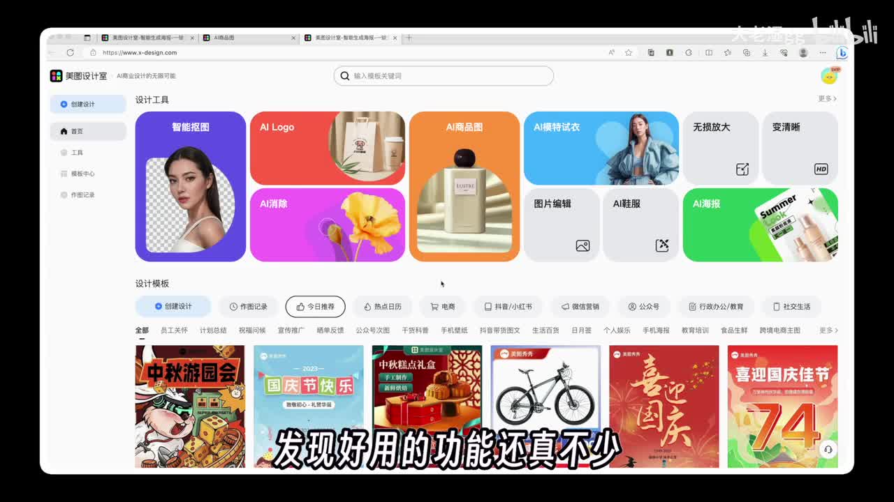 智能构图等等,还有各种电商海报的模板,真的是相当全面了。确实今年ai发展的太快了。