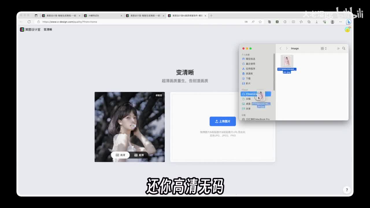 不过等一下兄弟们这个图片有点模糊,别慌,我们退到首页,找到这个变清晰工具,就能直接修复画质,还你高清无码,亲测好用。大家有任何模糊图片可以直接进来搞一下,直接解决清晰度问题。