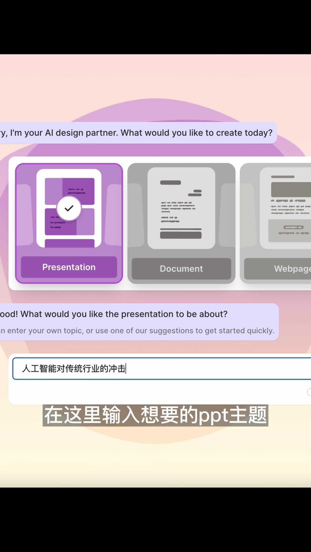 第二,美图p t在主页输入一句话,p p t瞬间生成。