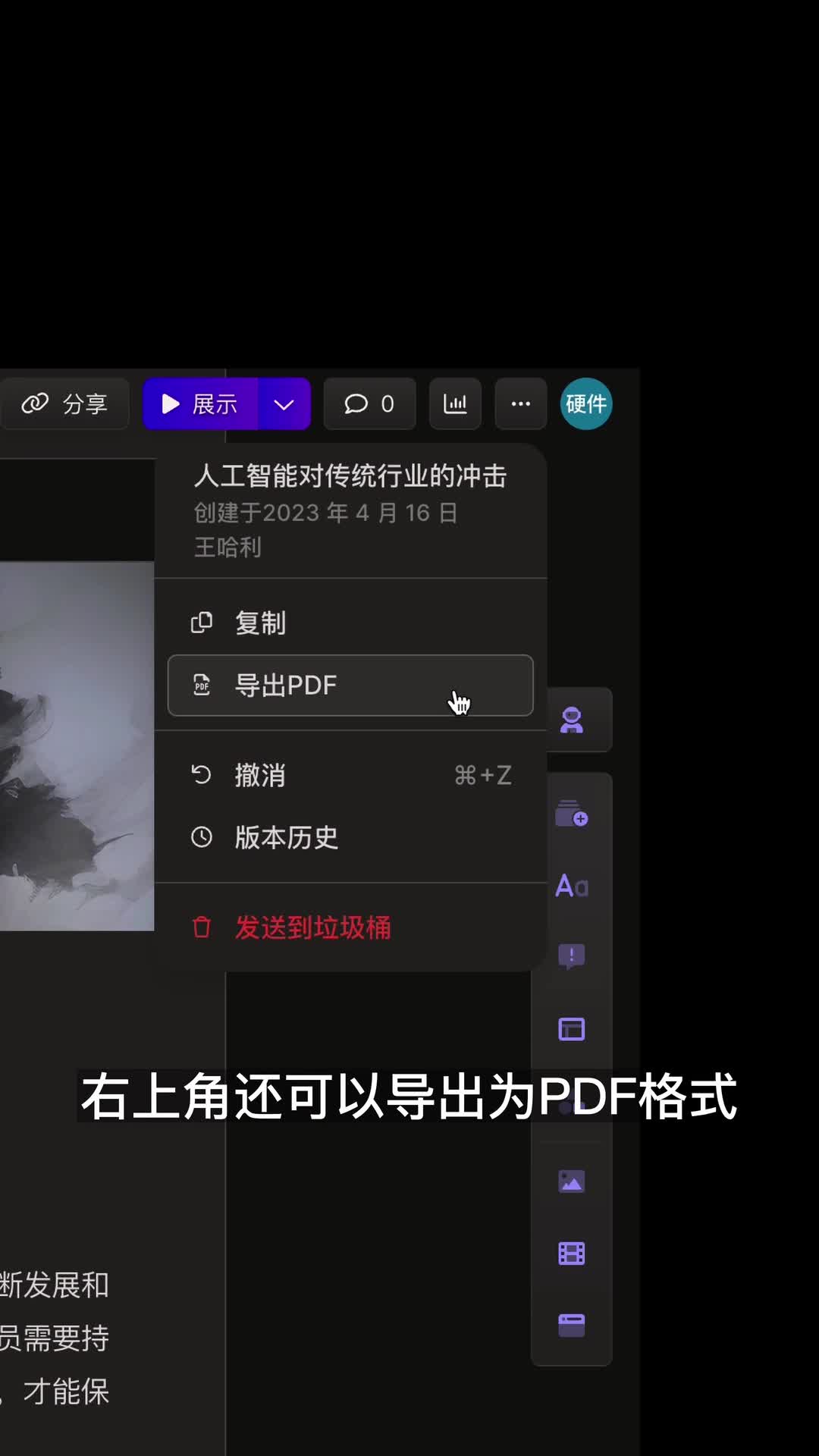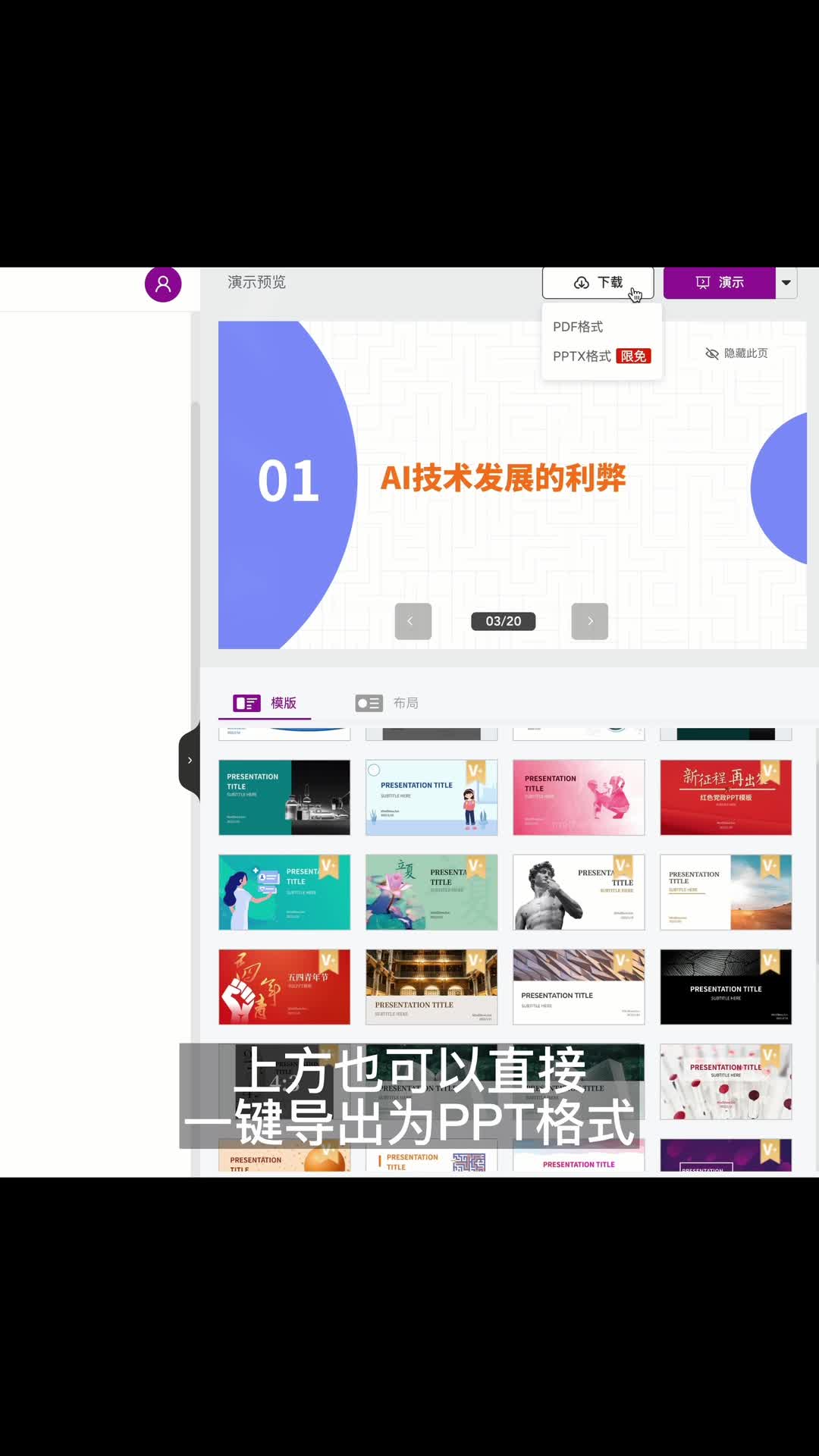 右侧还可以选择不同的模板,上方还可以直接一键导出为p t格式,非常的方便。