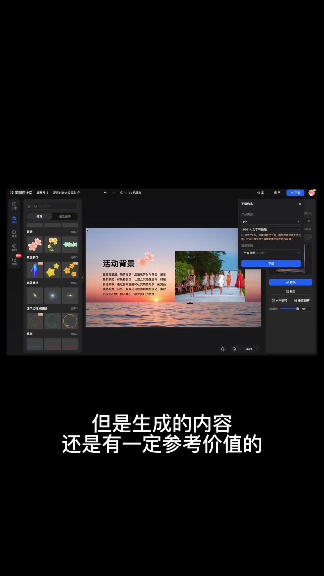 虽然图像的质量一般,但是生成的内容还是有一定参考价值的,而且还可以导出为powerpoint格式,体验还是非常不错的。