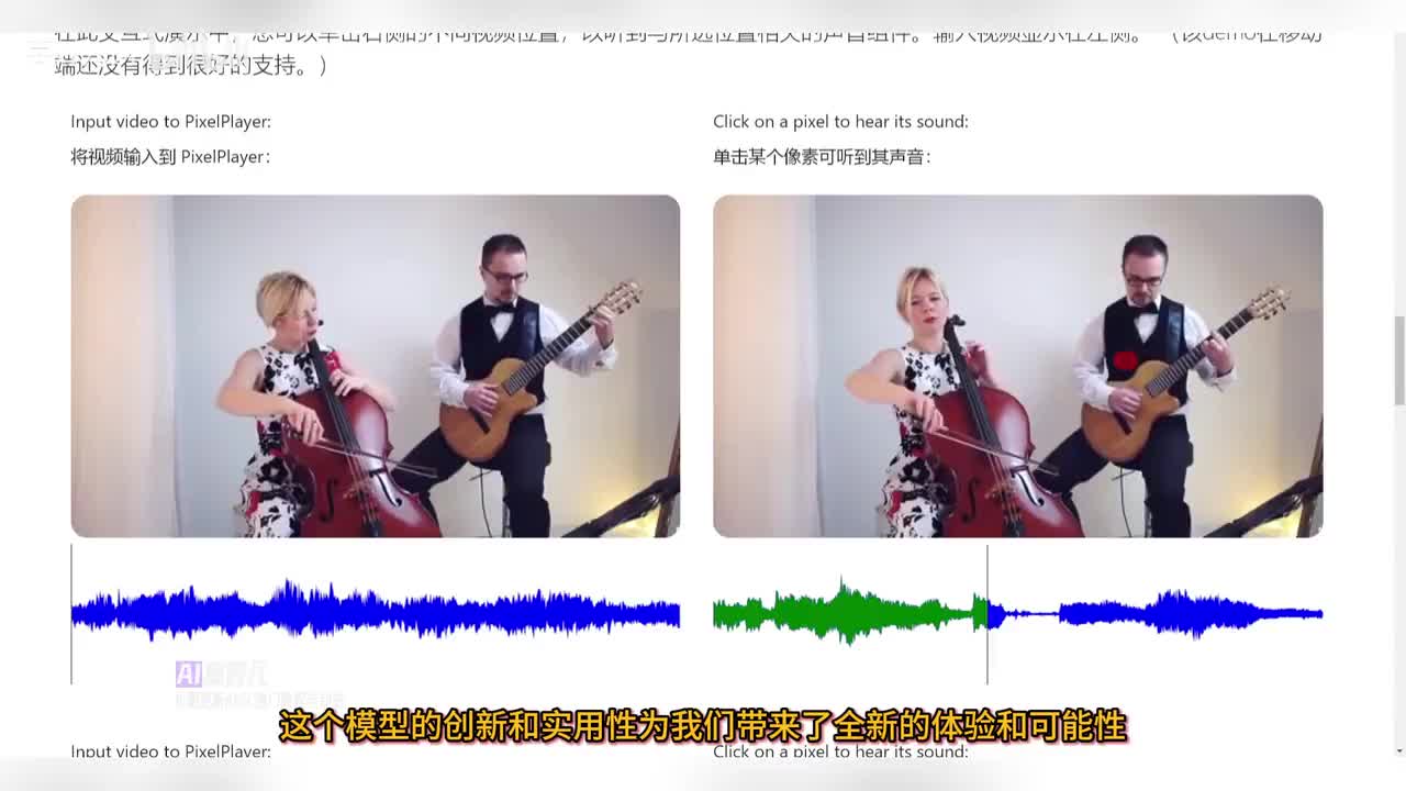 该模型通过观看大量未标记的视频,自动学习如何定位图像区域产生声音。