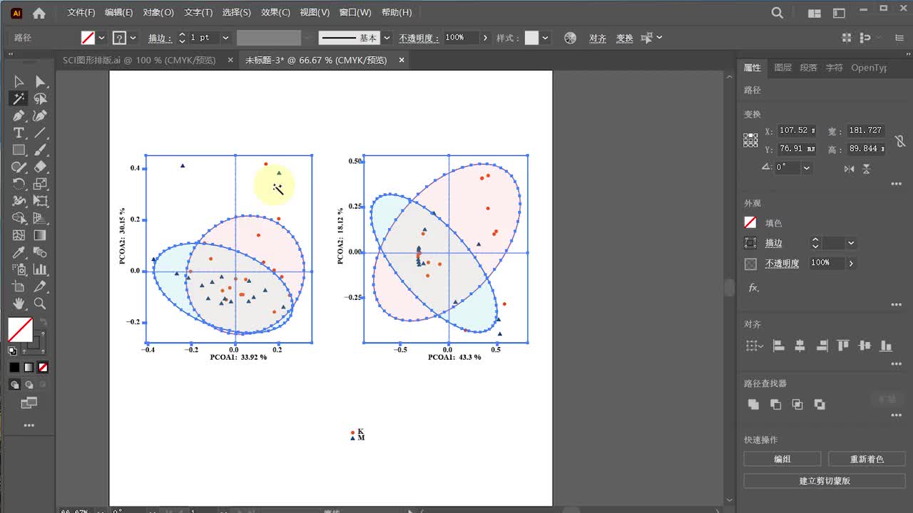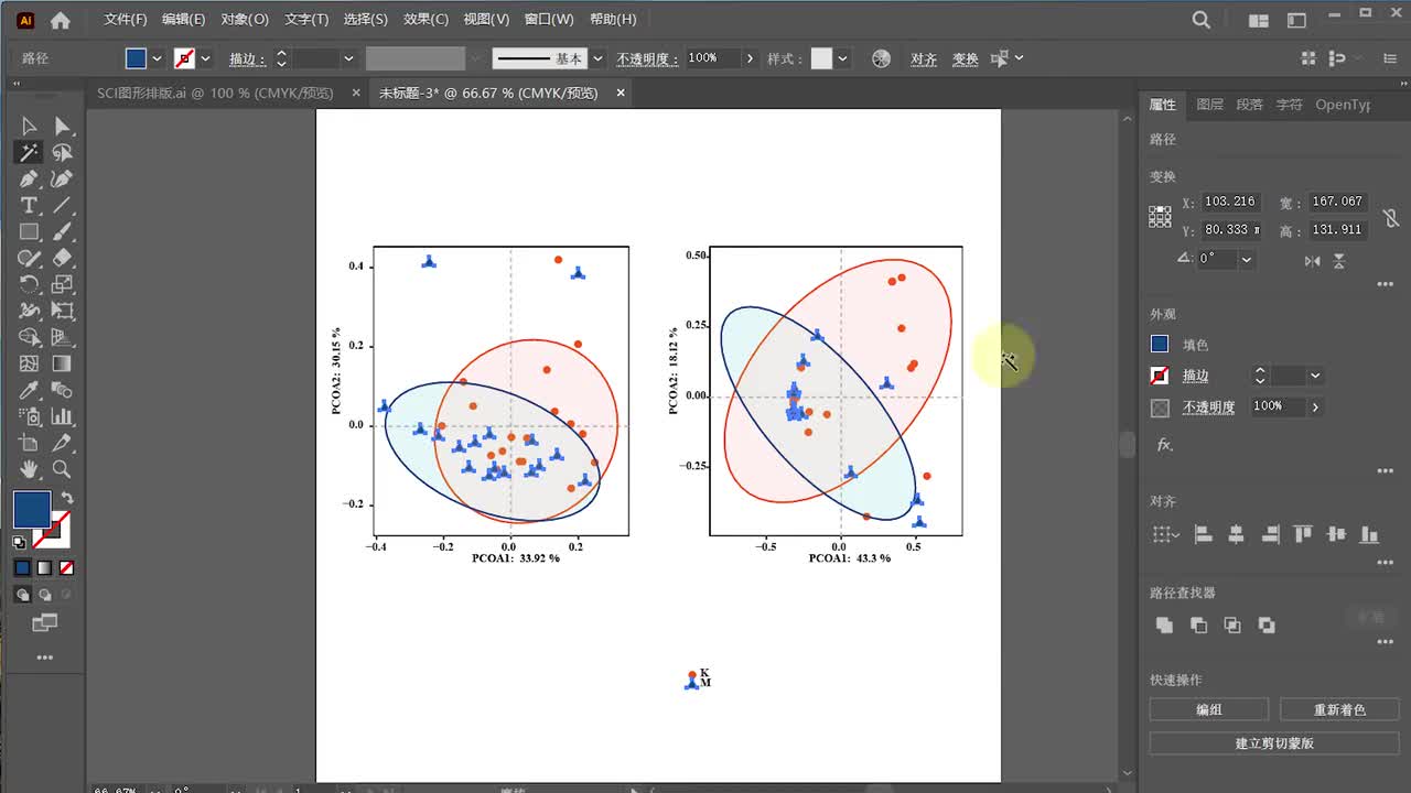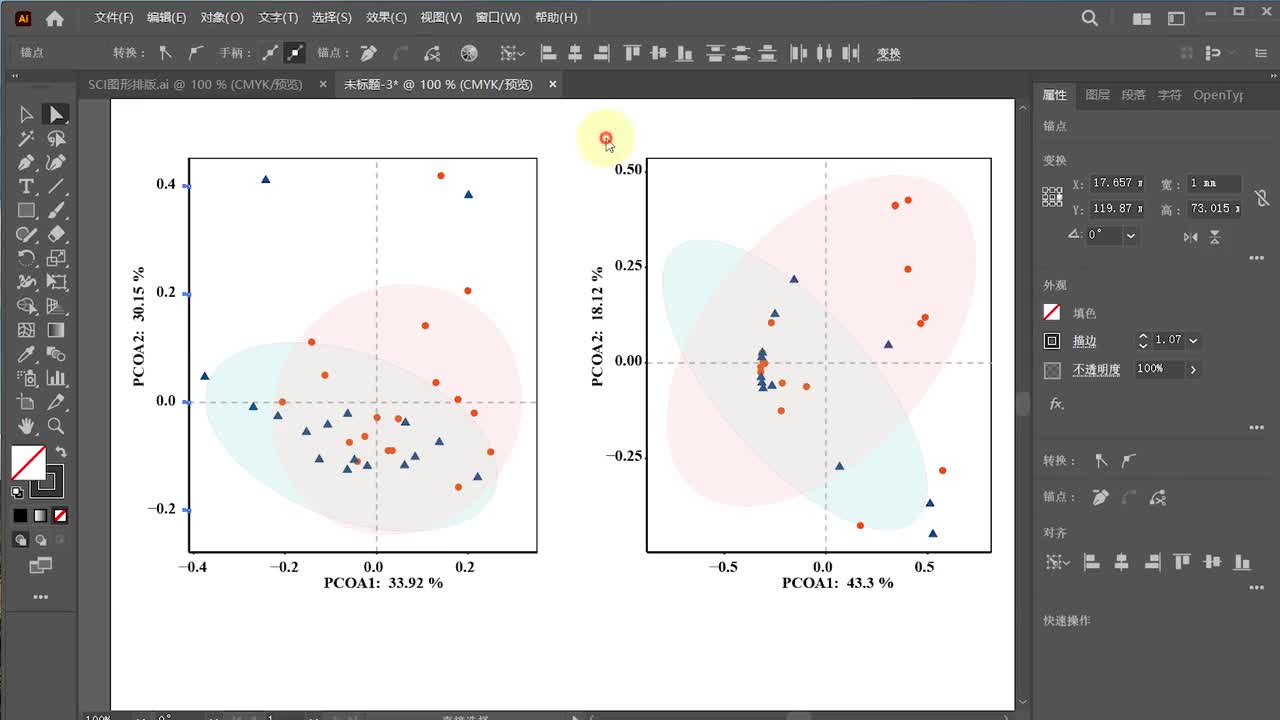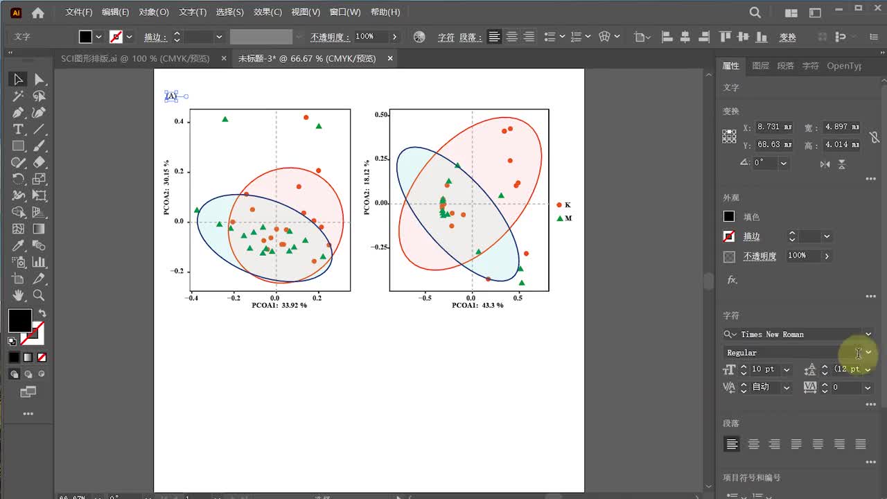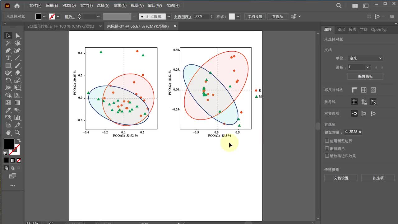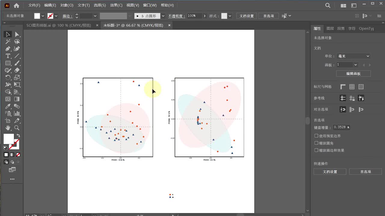像这样的论文图片用a i是如何排版的?我们首先就是点击文件新建,新建一个文档,点击这个打印创建一个a四的,然后点击创建。创建好之后,我们把这个两个图片control c复制一下啊,直接粘贴过来。然后点击这个嵌入,使用这个工具,使用选择工具把这两个图片给分开。然后按住shift键,把它等比缩放到一个合适的大小,同样的方法把它也给缩放一下。释放完之后,我们可以点击释放蒙版取消编组。释放蒙版取消编组。