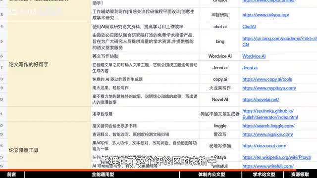 做学术成果的关键,而是推动我们学术创作效率的工具。而大部分时候我们在创作论文时,需要ai帮我们解决的,往往呢也是整篇论文的逻辑条理,从哪些维度去充实内容。不过视频的时长有限,我就不一一介绍对应的工具了。