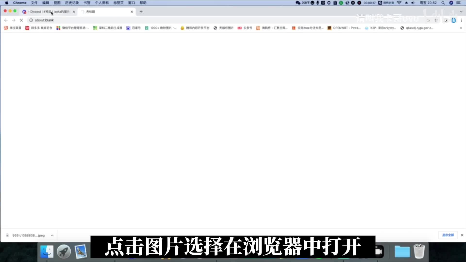 那这张图片作为选择,上传完图片,点击图片,然后这张图片彻底上传到服务器以后,点击图片,选择在浏览器中打开复制这张图片的链接,然后在底下的服务器选择携选,选择image。