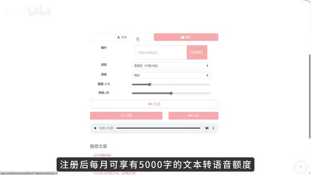 第二个on docu注册后每月可享有五千字的文本转语音额度,使用方法同样为在线使用。