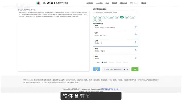 第一个t t s online在线使用完全免费软件,含有多种语言,音色非常接近真人,操作也很简单。