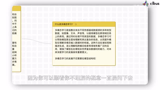 奥boss不会这样,他让你提出自己的疑问,然后用a i来回答,通过和a i互动的方式进行自我教学。举个例子,你可以向他提一个你好奇的问题,比如说什么是深度学习?a i就会教会你什么是深度学习。你不用害怕ai在回答中提到了一些你并不理解的概念,因为你可以顺着你不理解的概念一直提问下去,直到真正的理解全部知识。除了提问以外,你还可以直接插入外部的视频、文档、图片,让a i帮你总结提炼文档。然后把总结好的内容也纳入整个知识网络。我觉得这是更科学的学习链路,因为不是所有知识都是线性的。