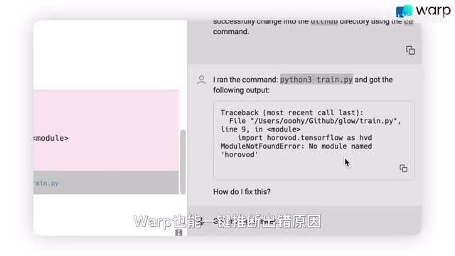 但在有了work之后,你只需要打一个井号,用直接用自然语言操作命令行。比如说我想删除这个文件夹,web就会把我的命令翻译成命令行指令,然后回车执行。如果遇到了冗长的报错,bob也能一键推断出出错原因。可能在未来即使你不是专业的程序员,bob也能帮你完成许多以前专业人士才能做的事儿。此外作为一个终端,bob的本职工作做的也很好。比如说我i工具盘点啊,我们这里就不做详细的讨论。