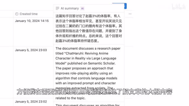 三明最有用的ai工具notion ai是我今年体验下来最有用的a i工具,它负责我从阅读、学习、写作到总结的所有流程。当我看到好文章时,我会一键分享到notion n的带读清单中。notion ai会迅速的帮我总结出这篇文章的关键词和摘要,方便我在需要查看和引用的时候快速的了解文章的大概内容。我经常直接使用语音输入来记录灵感,然后让能成a i帮忙润色成书面化的文案。还可以让他帮你画一张思维导图,翻译一句话一个概念,或者生成笔记的摘要,建立自己的知识库。那我们需要查找之前看到过的内容时,它可以用a i搜索整个的知识库,然后用自然语言告诉我搜索的结果。