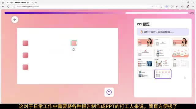 打工人终于可以早点下班了,就是这个a i p p t只需要一分钟就能帮你一键生成各种工作p p t,让你从此告别加班。只需要在这里输入想要制作的p p t主题,它就能自动为你生成p p t大纲,非常的全面细致。