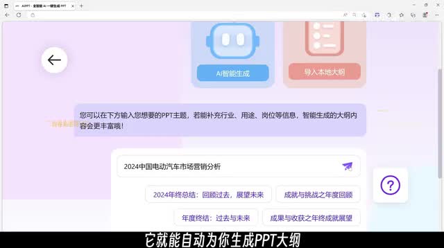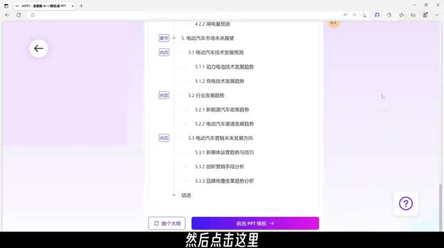 只需要在这里输入想要制作的p p t主题,它就能自动为你生成p p t大纲,非常的全面。