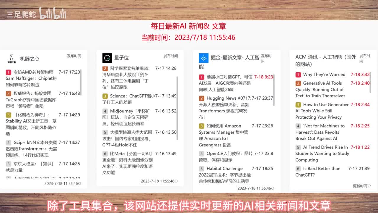除了工具集合,该网站还提供实时更新的ai相关新闻和文章,帮助你了解有关ai的最新资讯和专业知识。