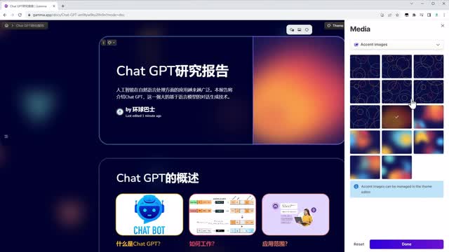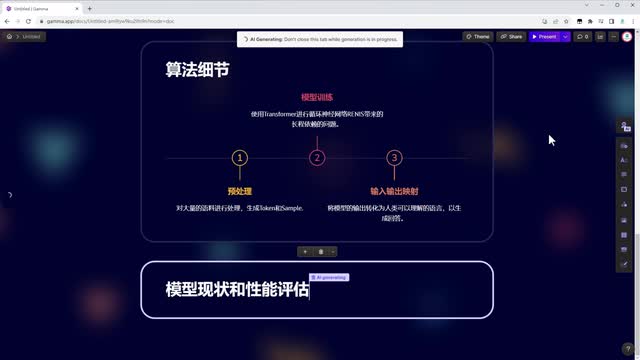 除了主题图片可以更换,内容里的插图也可以进行更换。当然,也可以对整个小节的内容进行调整。都调整好后,点击右上角的present就可以进行预览了。