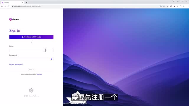 这样一份p p t如果你来做需要多久时间呢?一小时半天,还是需要一整天的时间,而我不到三分钟就做完了,这就是目前最好用的a i p p t工具伽马。如果你没有伽马的账号,需要先注册一个,当然也可以用google账号一键登录。这是我之前演示生成的p p t,你每次生成都会保存在这里,点击上方的great new a i,再点击generate即可开始。